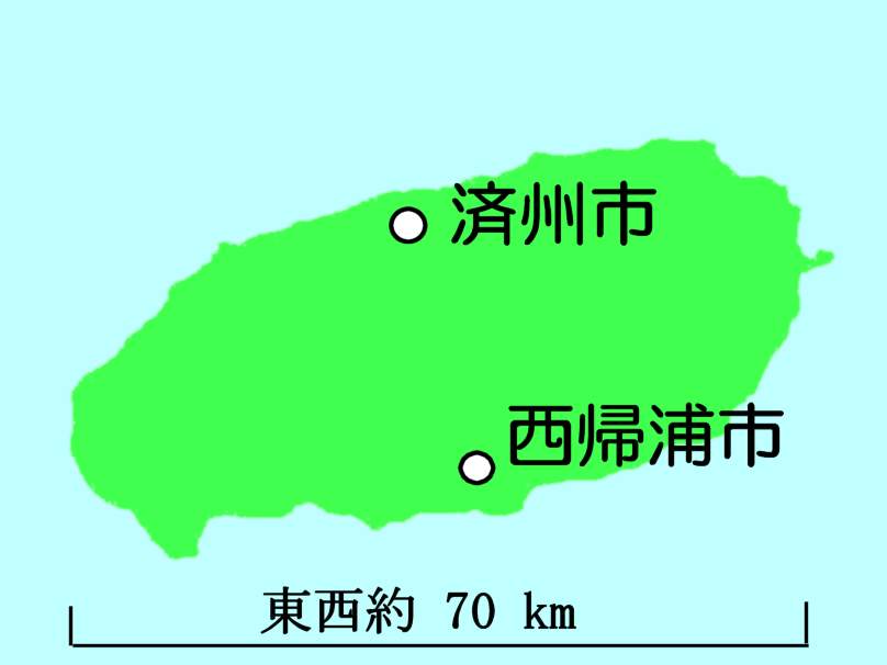朝鮮半島本土の南端から85kmにある大きな亜熱帯の火山島である。日本から見ると九州の西端の平戸から真西約200kmの場所にあり、面積は1,847ku