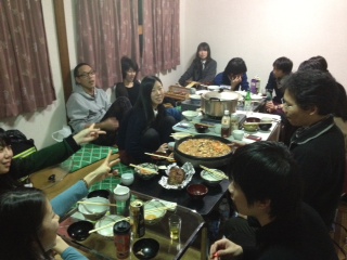 昨日はミーティング風景を撮るのを忘れたので、そのあとのご飯の風景を・・・笑