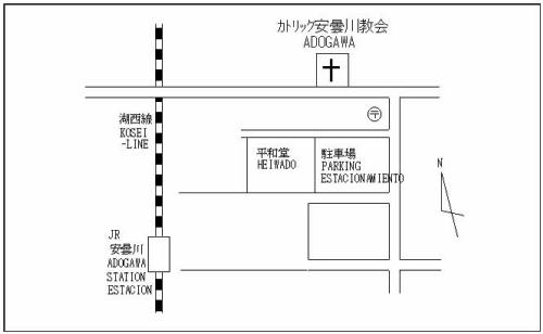 (土曜)10:00 (日曜)9:00 1°2°Dom.(espaniol)18:00 3°4°Dom.(portugues) 18:00 3rd Sun.(vietnamese) 11:00 3°linggo.(tagalog)15:00 (portugues)18:00 |